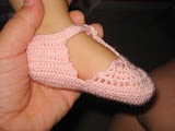 Aí está a sandalinha pronta nos pés de sua dona....mas ela preferiu tirar para brincar e colocar no lugar reservado para bolachinhas....!!!rsrs!!