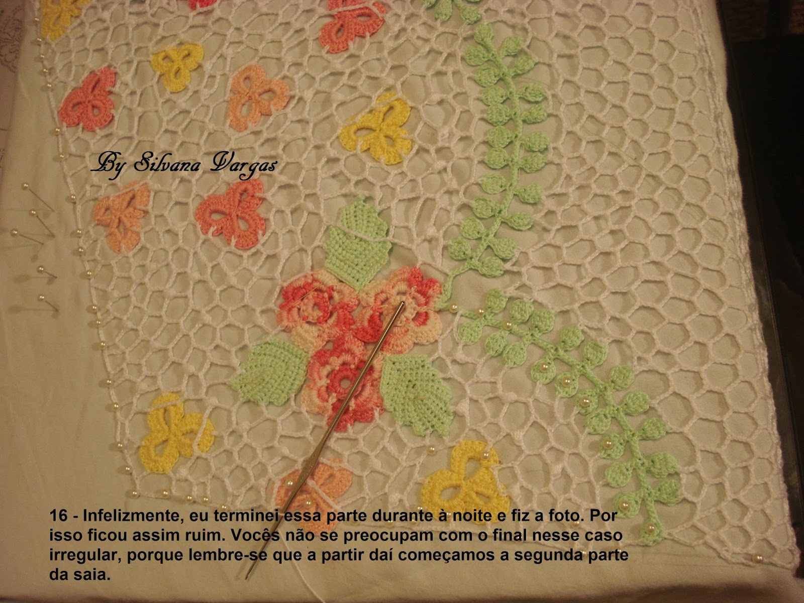 Finalmente pude editar as fotos e fazer um PAP explicativo sobre a confecção do vestidinho. Fui explicando o processo e em algumas fotos tem o gráfico das redes que usei.